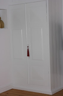 I rummet finns två stora skåp. Till vänster ett platsbyggt från när huset byggdes. Där inne ryms numera husets absolut smartaste detalj. Tvättnedkast till tvättstugan. Det är så bra att jag nästan dör. Hur kläderna ska komma upp igen har vi inte riktigt fått till dock. Men jag tänker varuhiss. Typ.